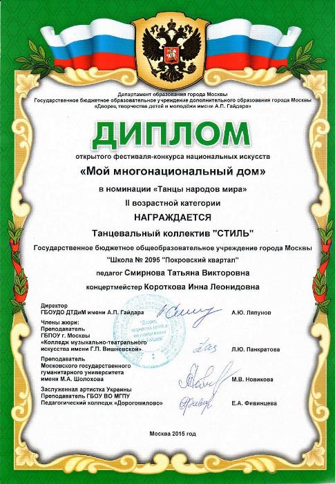 Сертификат участника конкурса "Марафон талантов многодетных семей", диплом окружного хореографического конкурса, диплом открытого фестиваля-конкурса национальных искусств "Мой многонациональный дом"