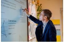 Ученики 8-х классов математической вертикали стали участниками уникального события: прошёл открытый урок по геометрии, проведённый самим автором учебника углублённого уровня, — Максимом Анатольевичем Волчкевичем. Тема занятия — «Подобие».